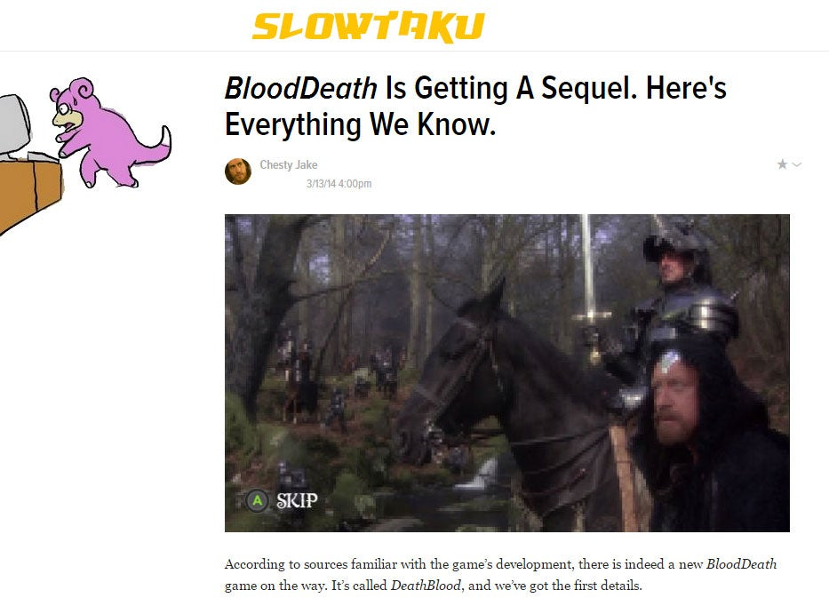 March 29 - Electronic Soft representatives issue a statement denying the news, and claim the “confusion” was the result of a “mistranslation.” (The game will eventually release with fewer weapons, levels and bosses than BloodDeath.)